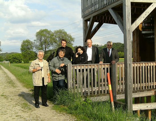 Hoch hinaus ging es für die Besuchergruppe schließlich bei dem neuen Besucherturm, von dem man einen grandiosen Ausblick auf das Schutzgebiet und die reizvolle niederbayerische Kulturlandschaft genießt. Naneder wies darauf hin, das Bauwerk habe rund 40.000 Euro gekostet und sei auch aus Mitteln der Europäischen Union gefördert worden. In luftiger Höhe befindet sich am Turm eine der vielen Naturerkundungsstationen, die über die enorme, gebietstypische Artenvielfalt informieren. Insgesamt werden mehr als 350 Tier- und Pflanzenarten, sowie ihre unterschiedlichen Lebensräume vorgestellt. Die ausgeklügelte, interaktive Konzeption lädt Alt und Jung, insbesondere Schulen dazu ein, spielerisch die Sinne zu schärfen und, geführt anhand spezieller Erkundungsbögen, einen neuen Blick für die Schönheiten im Naturschutzgebiet und am Wegesrand zu gewinnen. Vor allem Schulklassen aus dem Landkreis würden diese zielgerichtete Möglichkeit des Kennenlernens heimischer Natur hervorragend annehmen, so Helmut Naneder, dessen Erwartungen diesbezüglich bereits jetzt übertroffen wurden.
